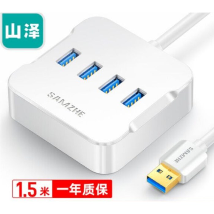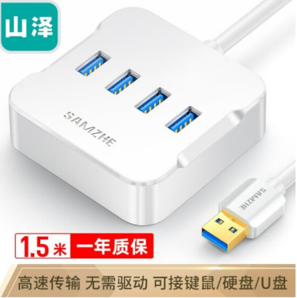 山泽(SAMZHE)HUB01 USB3.0分线器 高速4口HUB扩展坞集线器 笔记本电脑一拖四转换器延长线带电源接口1.5米